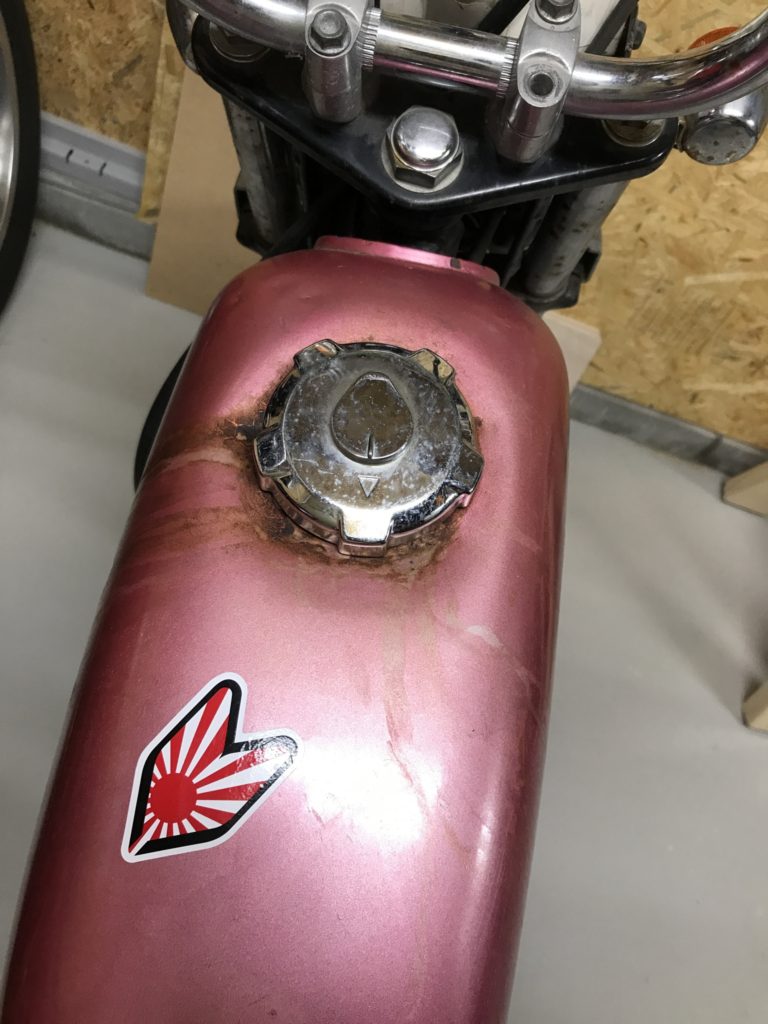 やっぱり値段通りボロボロでした・・・ 2019年8月25日By tak エイプ 適当な塗装・・・ ビス止まってない・・・ ステッカーはいいとして、おそらく盗難?かタンクの蓋の鍵穴がつぶされていて鍵がかけられない・・・しかも凹んでる・・・ リアタイヤツルツル・・・スピードメーターも動かない・・・チェーン歯飛びしまくり・・・ とにかく解体します! (Visited 36 times, 1 visits today)共有: Facebook で共有するにはクリックしてください (新しいウィンドウで開きます) Facebook クリックして X で共有 (新しいウィンドウで開きます) X いいね:いいね 読み込み中… 投稿ナビゲーション オンボロエイプ50を購入とりあえずダメな部品は交換し、普通に走れるようにする! コメントする コメントをキャンセルメールアドレスが公開されることはありません。 ※ が付いている欄は必須項目です 次回のコメントで使用するためブラウザーに自分の名前、メールアドレス、サイトを保存する。