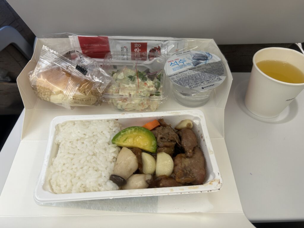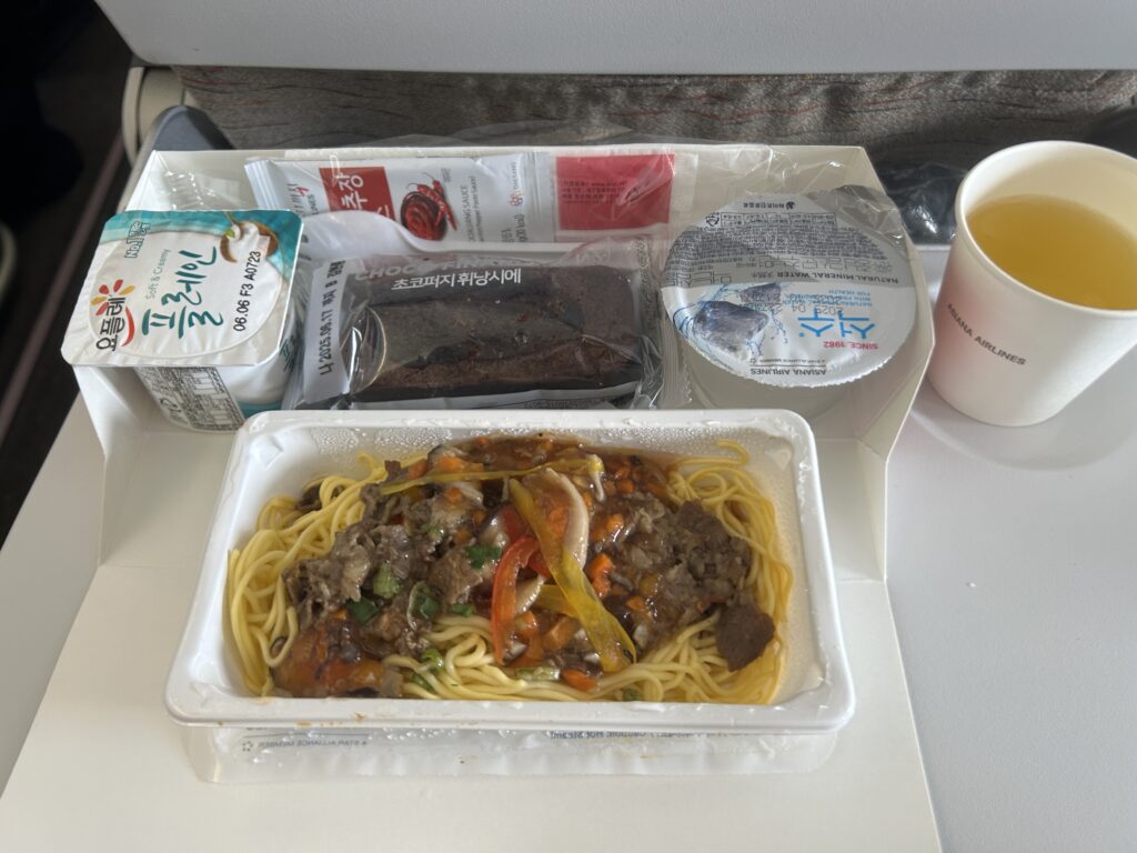 これは帰りのアシアナ航空の機内食です。米じゃなかったし正直物足りなかったですね。